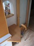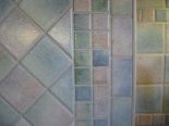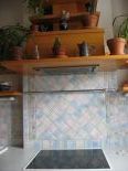 Boden: Inku Melan Schiffboden Buche. Wände: Küchenfliesen bzw. Marburg atmungsaktive Vlies-Struktur Wandbeläge.