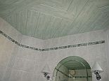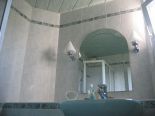 Boden: Italienische Fliesen. Wände: Italienische Fliesen, bis an die Decke verfließt.