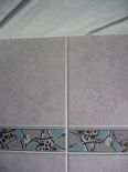Boden: Fliesen. Wände: Bis an die Decke verfliest.