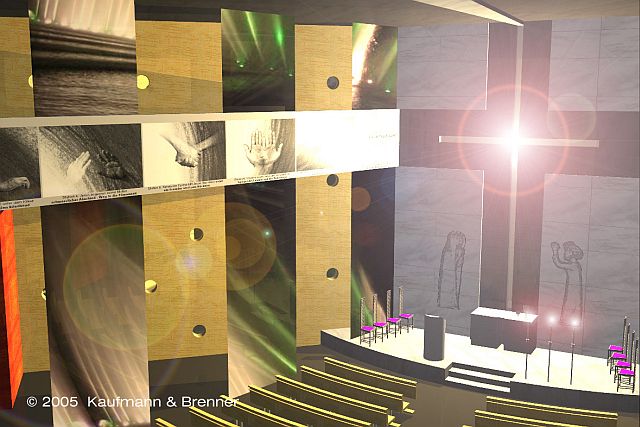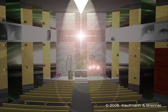 Die Religion soll sich in Bildern und Stimmungseffekten leicht verständlich erklären, die architektonische Sprache muss eindringlich und eindeutig sein. Dies erscheint gerade in einer Zeit, wo konkurrierende Sparten wie Medien, Film und Musik mit vergleichsweise extrem aufwendig gestalteten Botschaften arbeiten, notwendiger denn je. Mit diesem Entwurf wurde versucht, wieder mit zeitgemäßen Innovationen auf zwei Jahrtausende alte Traditionen aufzubauen, ohne jedoch zwanghaft das Rad neu erfinden zu wollen.