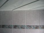 Boden: Fliesen. Wände: Bis an die Decke verfliest.